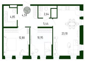Продаётся 2-комнатная квартира в строящемся доме (Позиция 2), срок сдачи: III-кв. 2029, общей площадью 64.37 кв.м., на 3 этаже. Новый жилой комплекс в г. Тула "Платон Парк" от застройщика ООО "СЗ "МОНОЛИТ""