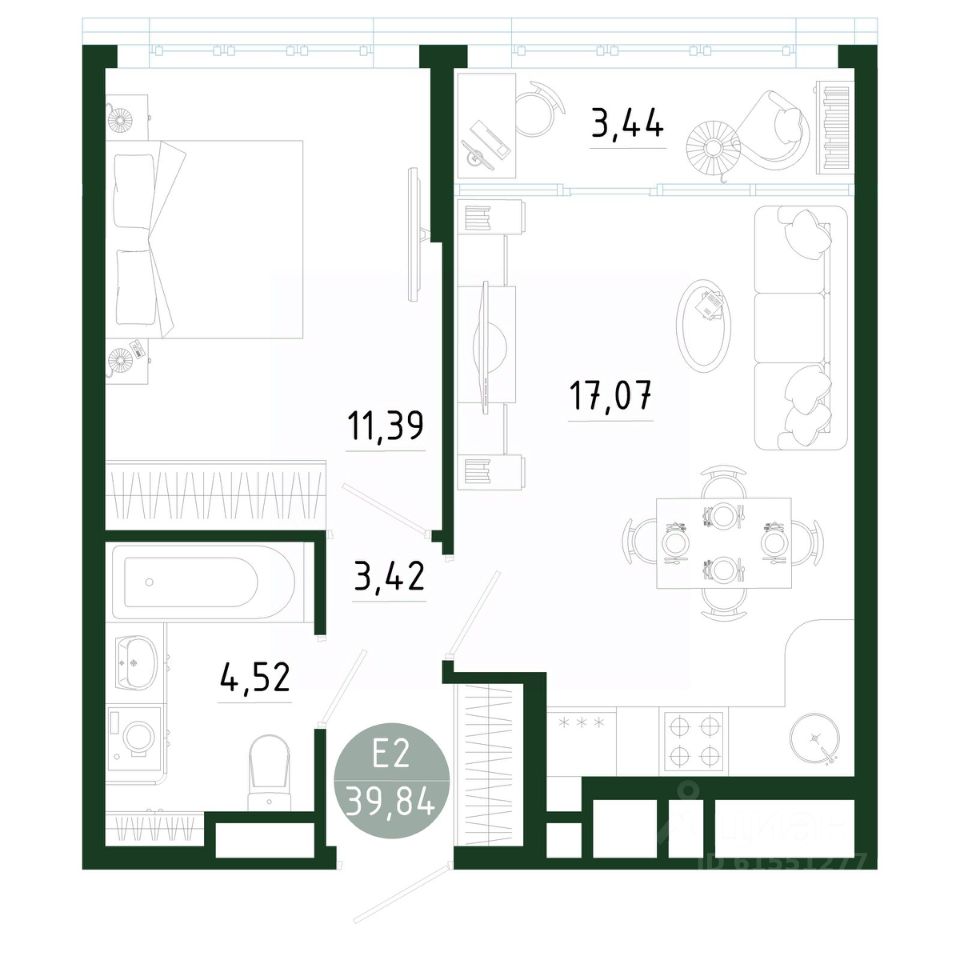 Продаётся 1-комнатная квартира в строящемся доме (Позиция 2), срок сдачи: III-кв. 2029, общей площадью 39.84 кв.м., на 7 этаже. Новый жилой комплекс в г. Тула "Платон Парк" от застройщика ООО "СЗ "МОНОЛИТ""