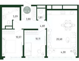 Продаётся 2-комнатная квартира в строящемся доме (Позиция 2), срок сдачи: III-кв. 2029, общей площадью 60.16 кв.м., на 7 этаже. Новый жилой комплекс в г. Тула "Платон Парк" от застройщика ООО "СЗ "МОНОЛИТ""