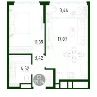 Продаётся 1-комнатная квартира в строящемся доме (Позиция 2), срок сдачи: III-кв. 2029, общей площадью 39.84 кв.м., на 9 этаже. Новый жилой комплекс в г. Тула "Платон Парк" от застройщика ООО "СЗ "МОНОЛИТ""
