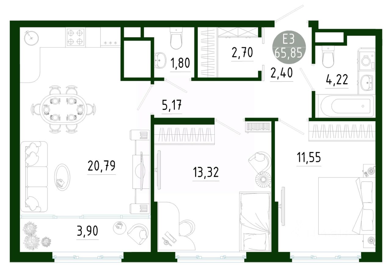 Продаётся 2-комнатная квартира в строящемся доме (Позиция 2), срок сдачи: III-кв. 2029, общей площадью 65.85 кв.м., на 10 этаже. Новый жилой комплекс в г. Тула "Платон Парк" от застройщика ООО "СЗ "МОНОЛИТ""