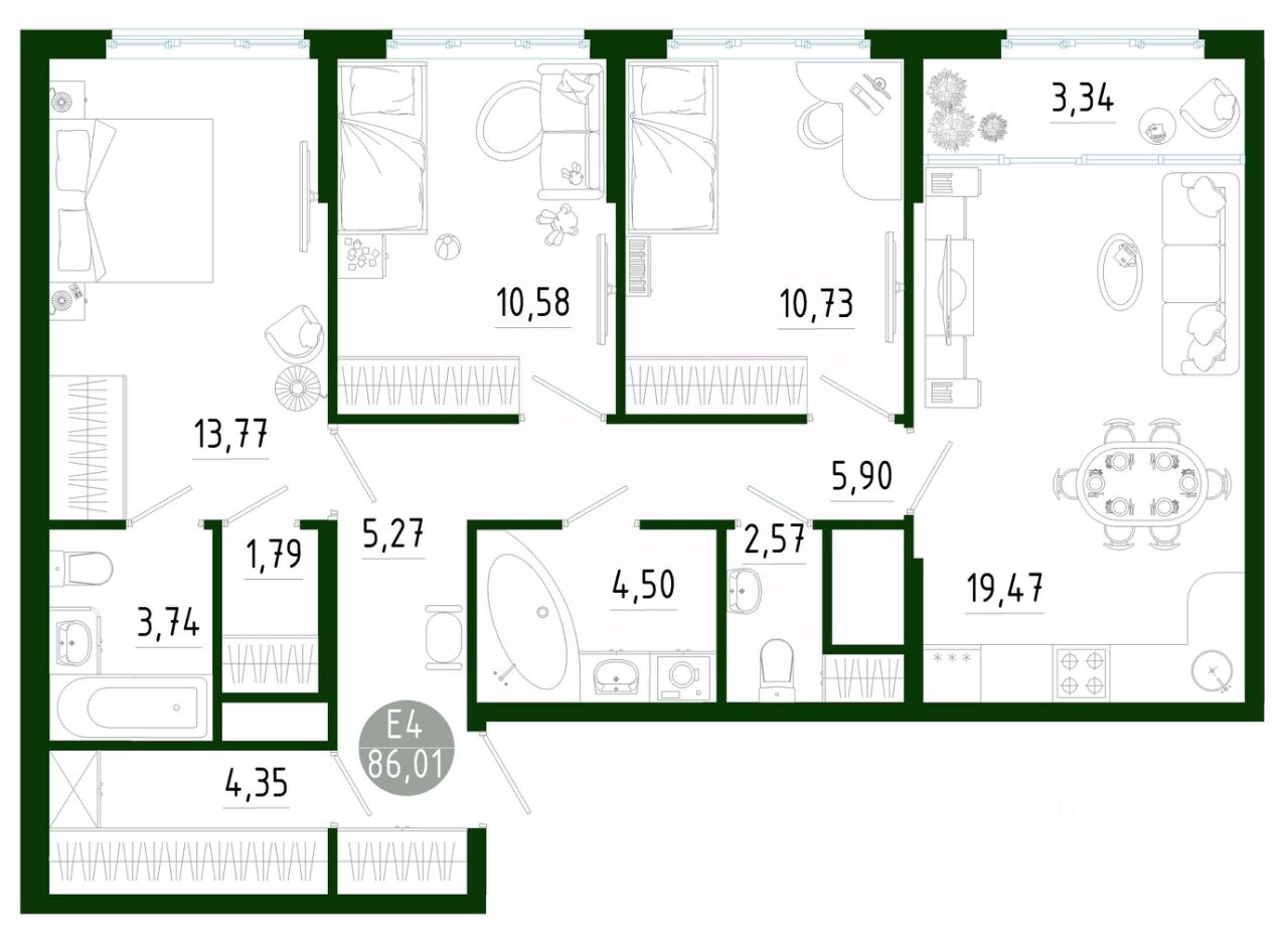 Продаётся 3-комнатная квартира в строящемся доме (Позиция 2), срок сдачи: III-кв. 2029, общей площадью 86.01 кв.м., на 12 этаже. Новый жилой комплекс в г. Тула "Платон Парк" от застройщика ООО "СЗ "МОНОЛИТ""