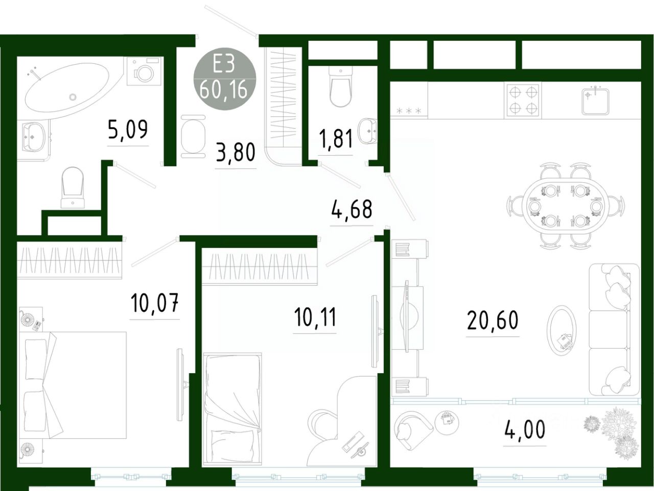 Продаётся 2-комнатная квартира в строящемся доме (Позиция 2), срок сдачи: III-кв. 2029, общей площадью 60.16 кв.м., на 14 этаже. Новый жилой комплекс в г. Тула "Платон Парк" от застройщика ООО "СЗ "МОНОЛИТ""