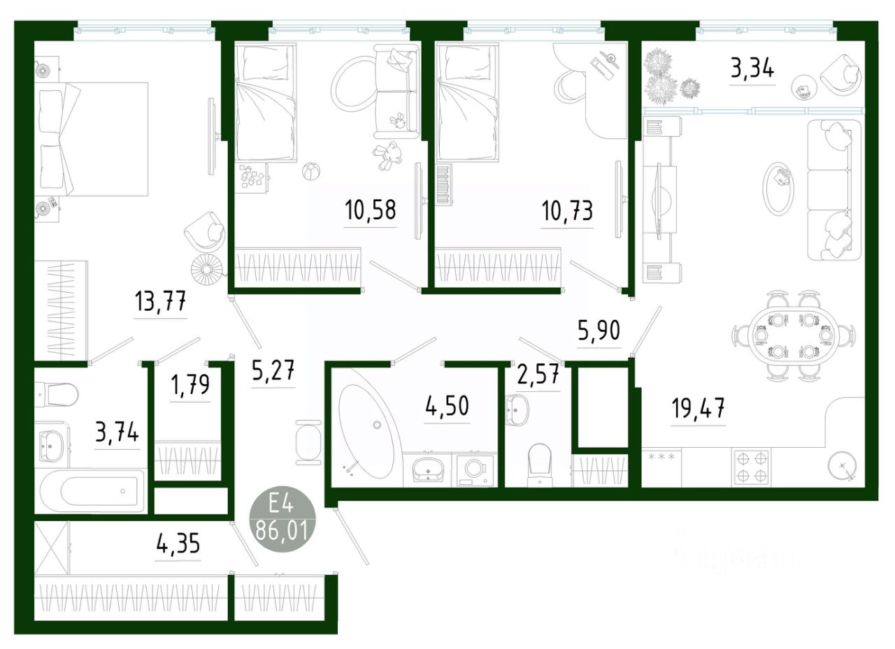 Продаётся 3-комнатная квартира в строящемся доме (Позиция 2), срок сдачи: III-кв. 2029, общей площадью 86.01 кв.м., на 15 этаже. Новый жилой комплекс в г. Тула "Платон Парк" от застройщика ООО "СЗ "МОНОЛИТ""