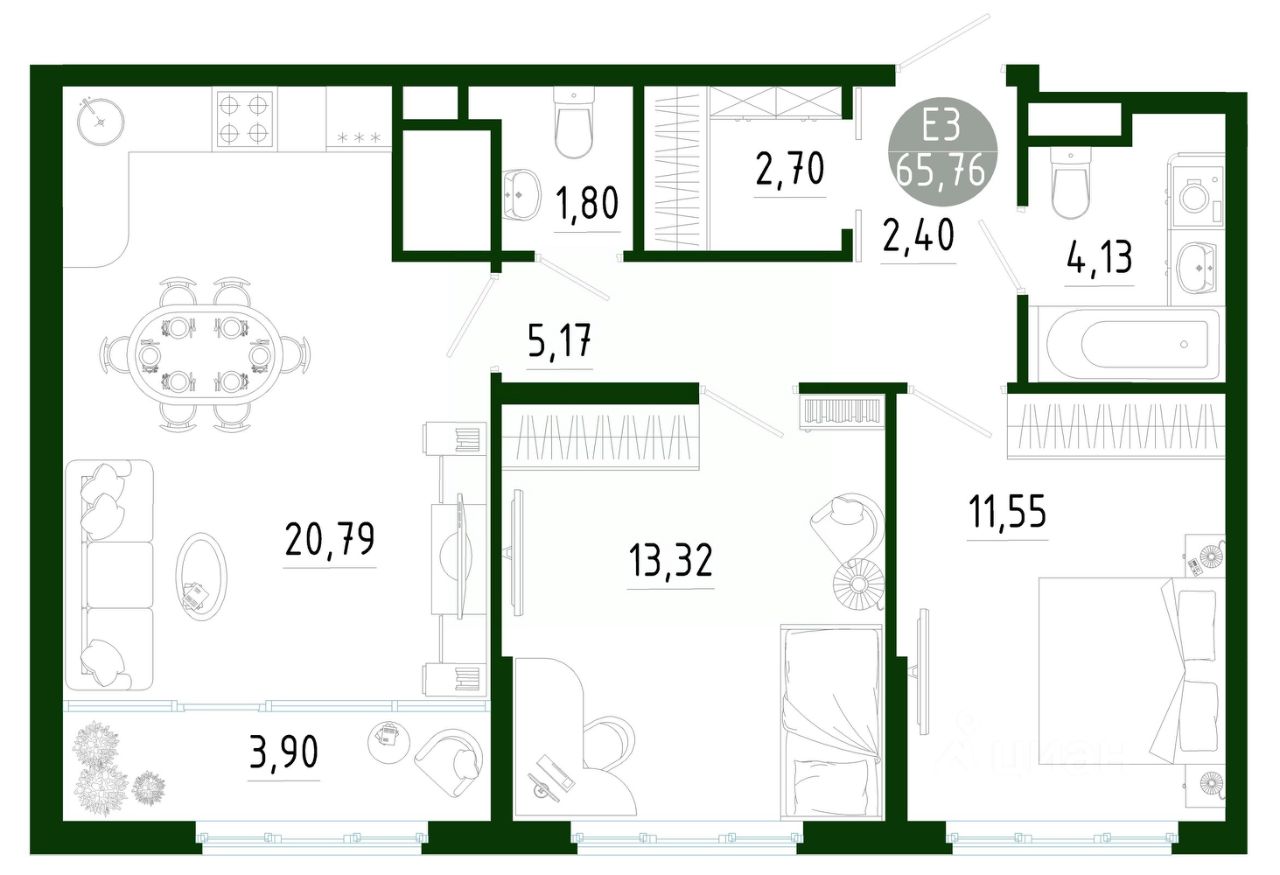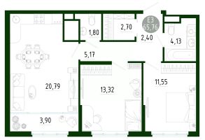 Продаётся 2-комнатная квартира в строящемся доме (Позиция 2), срок сдачи: III-кв. 2029, общей площадью 65.76 кв.м., на 20 этаже. Новый жилой комплекс в г. Тула "Платон Парк" от застройщика ООО "СЗ "МОНОЛИТ""