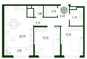 Продаётся 2-комнатная квартира в строящемся доме (Позиция 2), срок сдачи: III-кв. 2029, общей площадью 65.76 кв.м., на 24 этаже. Новый жилой комплекс в г. Тула "Платон Парк" от застройщика ООО "СЗ "МОНОЛИТ""