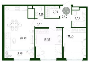 Продаётся 2-комнатная квартира в строящемся доме (Позиция 2), срок сдачи: III-кв. 2029, общей площадью 65.76 кв.м., на 25 этаже. Новый жилой комплекс в г. Тула "Платон Парк" от застройщика ООО "СЗ "МОНОЛИТ""