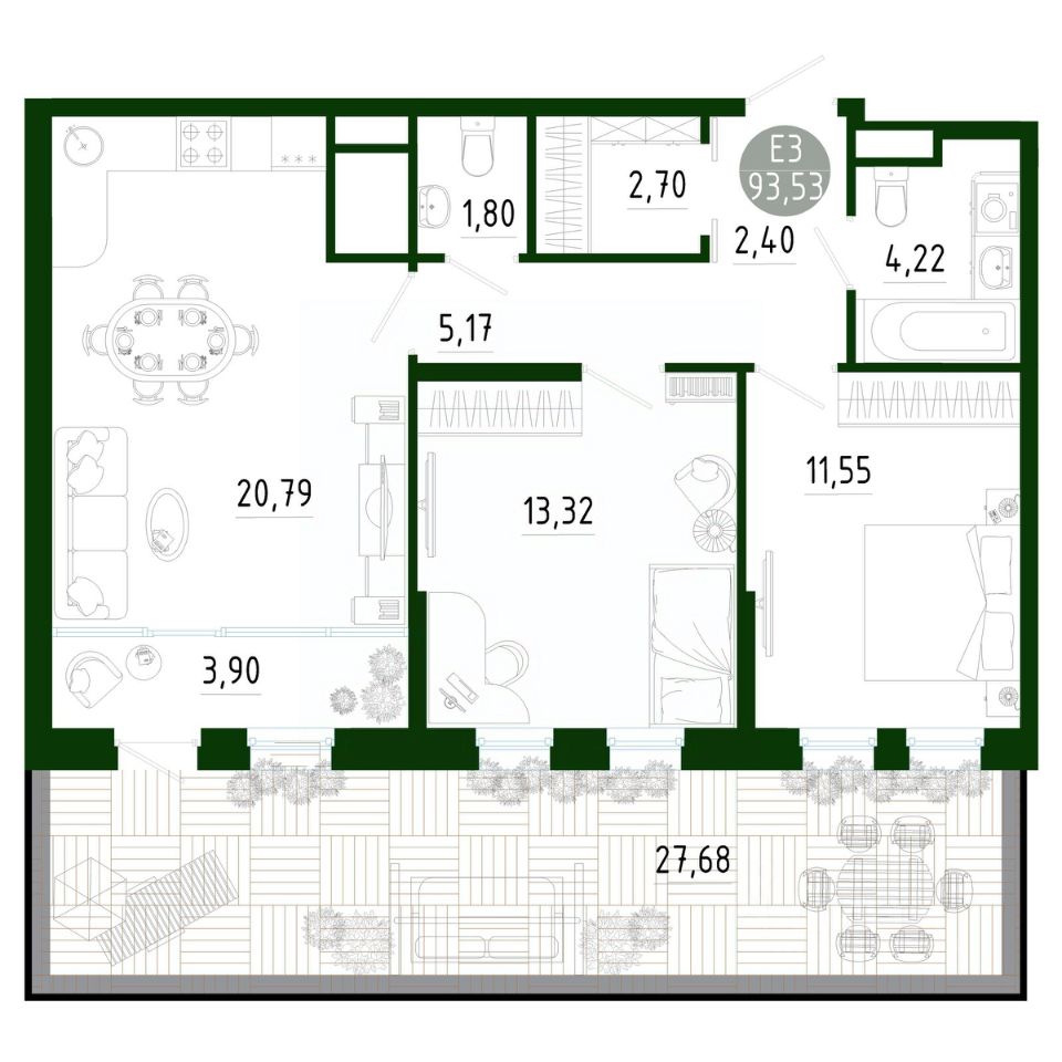 Продаётся 3-комнатная квартира в строящемся доме (Позиция 2), срок сдачи: III-кв. 2029, общей площадью 93.53 кв.м., на 1 этаже. Новый жилой комплекс в г. Тула "Платон Парк" от застройщика ООО "СЗ "МОНОЛИТ""