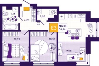 Общая площадь54,44 м²