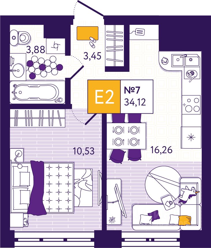 Общая площадь34,12 м²