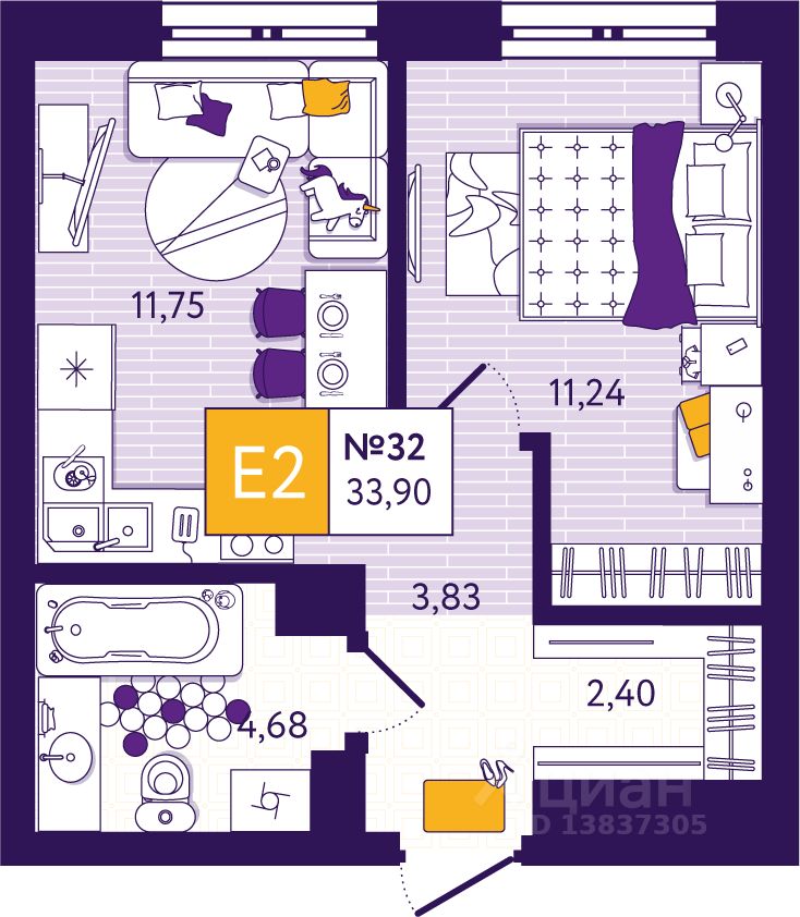 Общая площадь33,9 м²