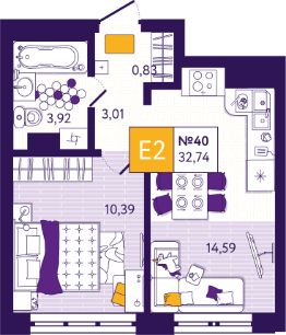 Общая площадь32,74 м²