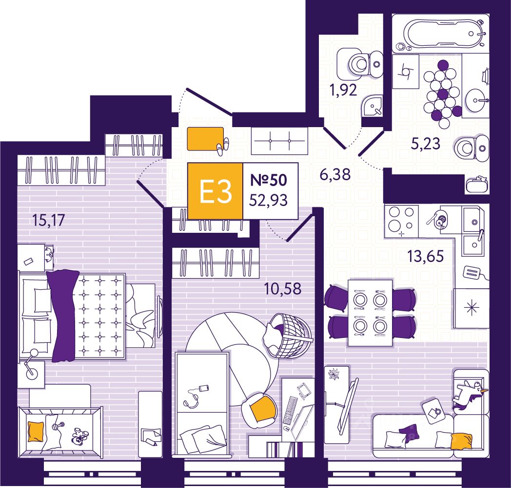 Общая площадь52,93 м²