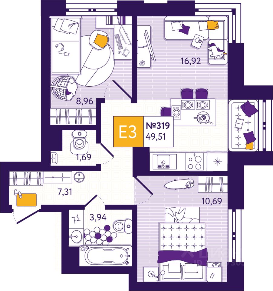 Общая площадь49,51 м²