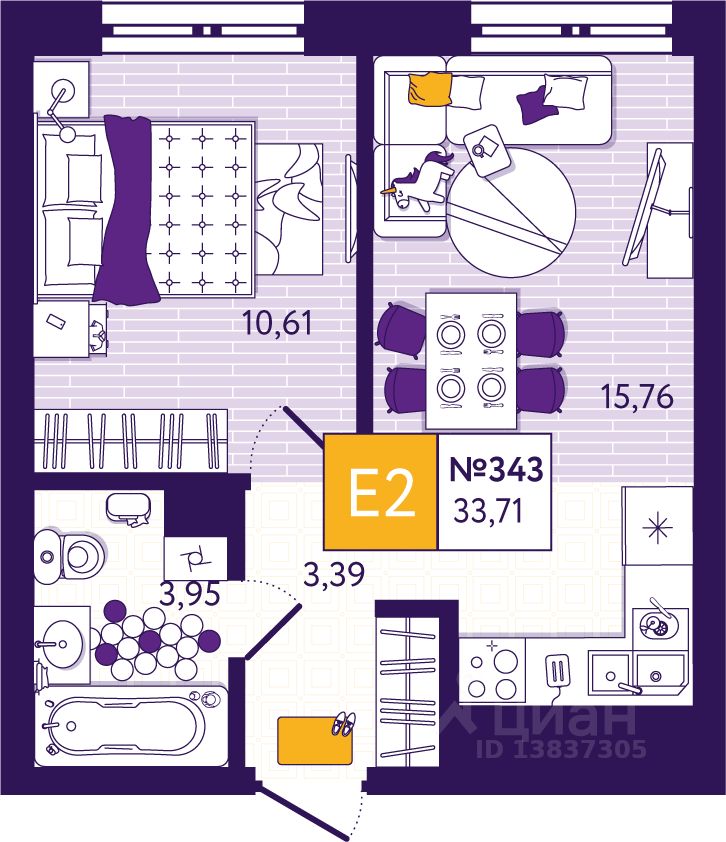 Общая площадь33,71 м²
