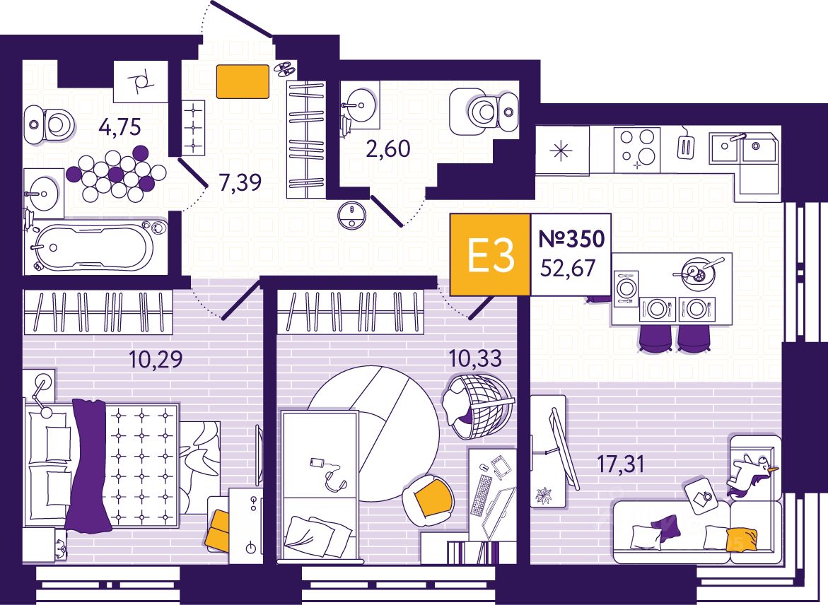 Квартира в новом жилом комплексе комфорт-класса "Всё и сразу". Всего 2 минуты до ул. Октябрьской. Удобная транспортная развязка позволит легко добраться до центра или быстро выехать из города. В близи находятся магазины, аптеки, парки, медицинские центры. По пути есть автомобильная заправочная станция. В ближайшем будущем в шаговой доступности появятся детский сад и школа. Собственная инфраструктура во дворе: супермаркет, салон красоты, пункты выдачи интернет-заказов, аптека, кофейня, пекарня, фитнес-центр, детская и взрослая амбулатории. Яркая современная архитектура с выступающими эркерами, которые добавляют уникальности как экстерьеру, так и внутреннему дизайну квартир. Корзины для кондиционеров повторяющие контрастные цвета фасада. Квартира правильной геометрической формы позволяет функционально использовать все пространство. Будет сдаваться с отделкой: - Стяжка пола со звукоизоляцией - Выравнены стены* - Выполнена гидроизоляция пола и стен в санузлах - Системы водоснабжения и отопления разведены горизонтально в конструкции пола - Качественные радиаторы отопления с возможностью регулировки тепла - Разводка электропроводки* - Квартирный щиток с автоматами - Датчики задымления противопожарной системы - Установлены приборы учета - Выводы под интернет и ТВ - Двухкамерные стеклопакеты - На входе надежная входная металлическая дверь. Есть возможность приобрести квартиру с готовым ремонтом.* Во дворе предусмотрены: детские игровые и развивающие площадки для разных возрастов, зоны для спорта и спокойного отдыха (спортивная площадка, современные тренажеры, велосипедная и беговая дорожки, беседки с подсветкой, площадка для настольного тенниса, каток, зарядка для электромобилей, беспроводной интернет и многое другое). Стильные дизайнерские подъезды включают все элементы удобства: - Входные группы на уровне земли. Подъезды сквозные с проходом во внутренний двор и на парковку. - Помещения для хранения велосипедов, самокатов и колясок - Дизайнерские холлы с понятной навигацией - 2 скоростных современных лифта - Зона ожидания с мягкой мебелью, где можно встретить курьера или подождать такси Проект от надежного тульского застройщика ООО "Специализированный застройщик "Монолит", входящего в ГК "Стройкомплект" с многолетним опытом. Выгодная ипотека. Бесплатная помощь в одобрении заявки. *Дополнительная опция, подробности уточняйте в отделе продаж