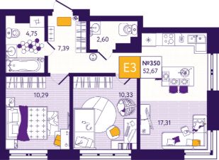 Общая площадь52,67 м²
