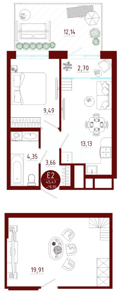 Общая площадь45,47 м²