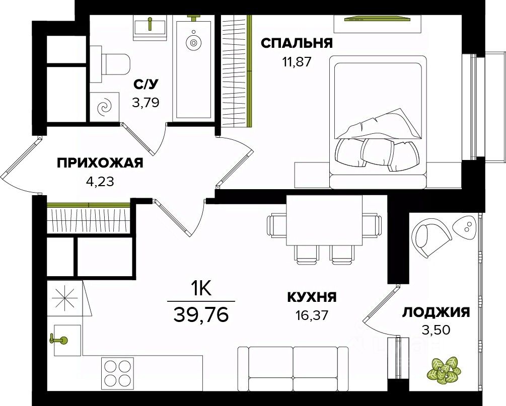 39,76 м²