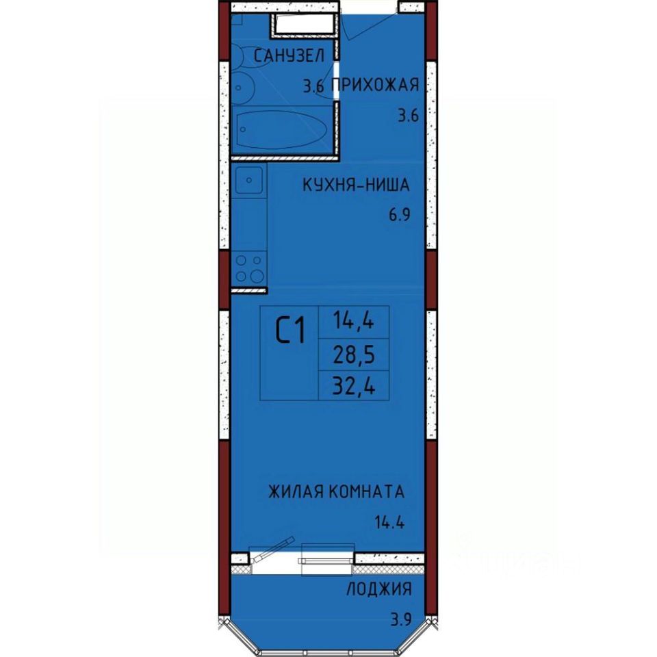 Общая площадь32,4 м²