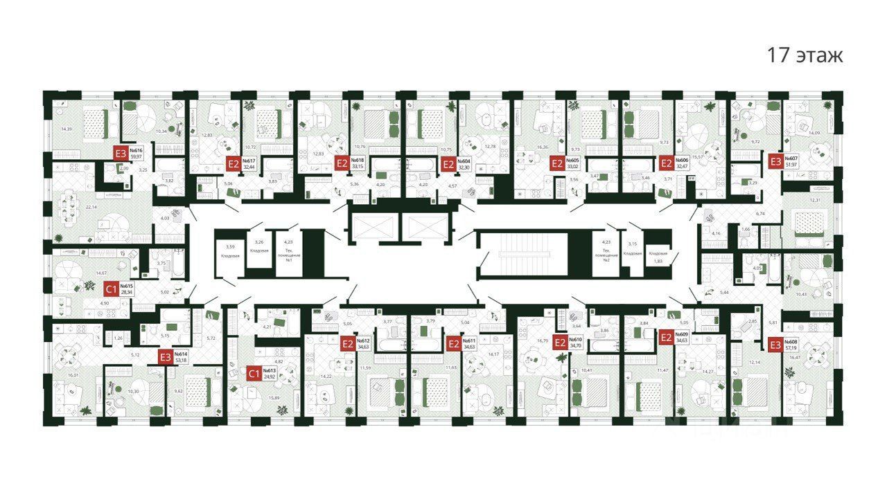 - Лифтовые холлы с понятной навигацией, 2 скоростных лифта