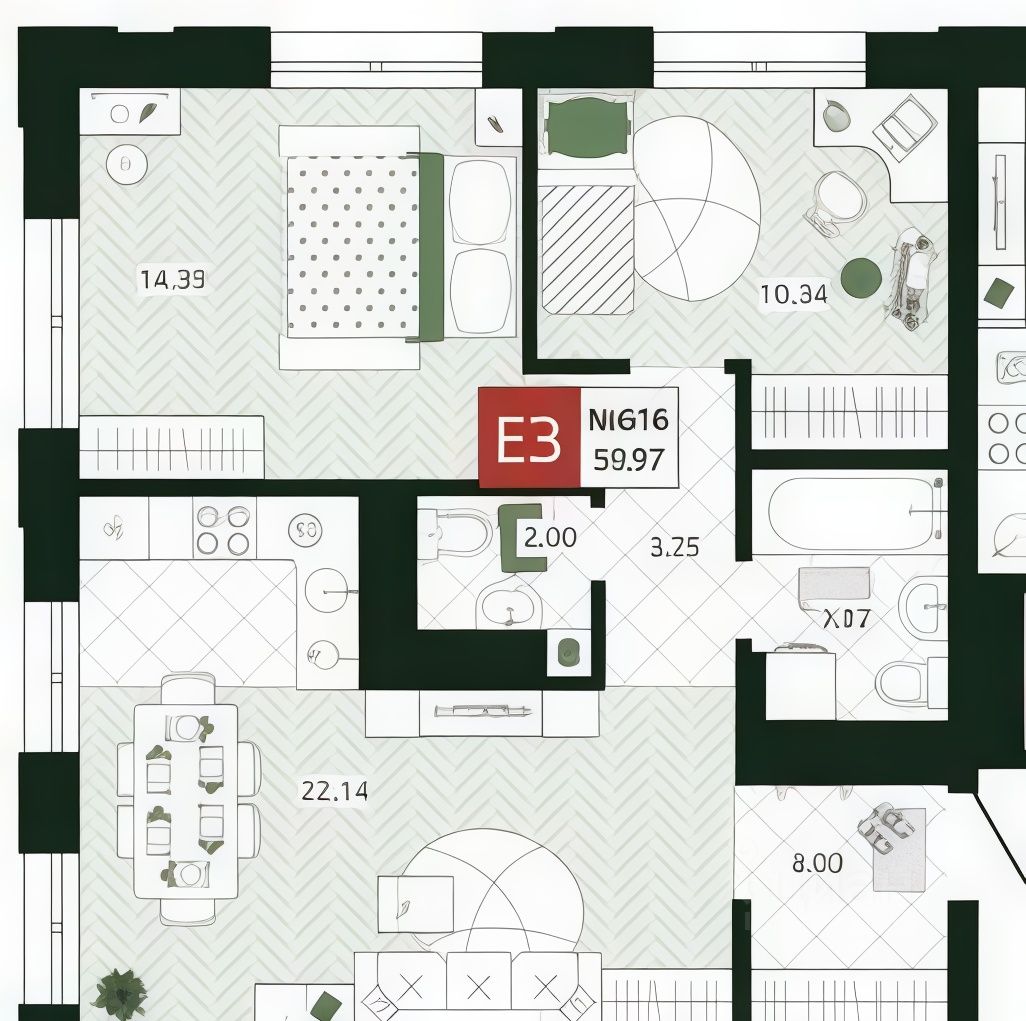 Продается просторная квартира Евро-3 (две спальни + кухня-гостиная) в новом ЖК комфорт-класса Желания от надежного застройщика ГК Стройкомплект. Продажа по переуступке прав требования по ДДУ. По договору сдача дома 4 кв. 2028г., фактически застройщик обещает сдать дом в 4 кв. 2027г.