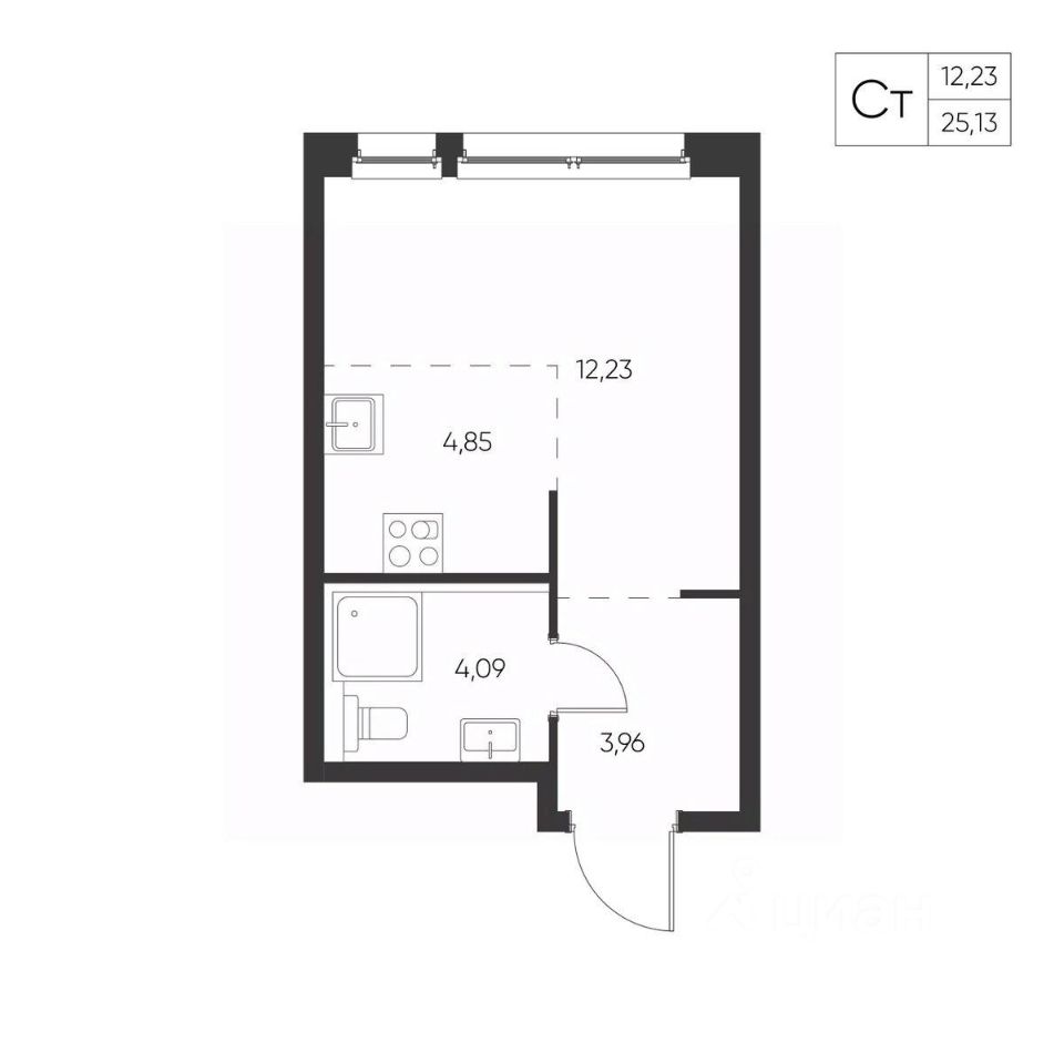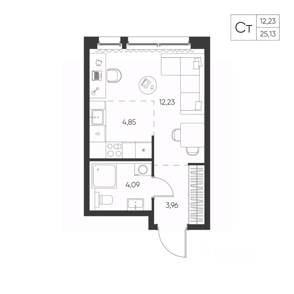 Общая площадь25,13 м²