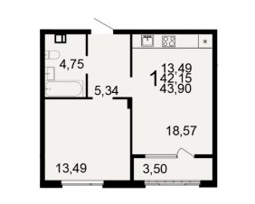 43,9 м²