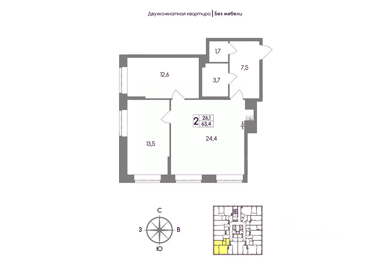 Общая площадь63,4 м²