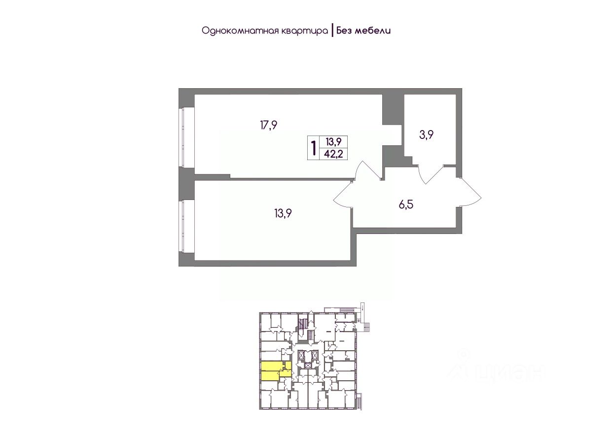 Общая площадь42,2 м²