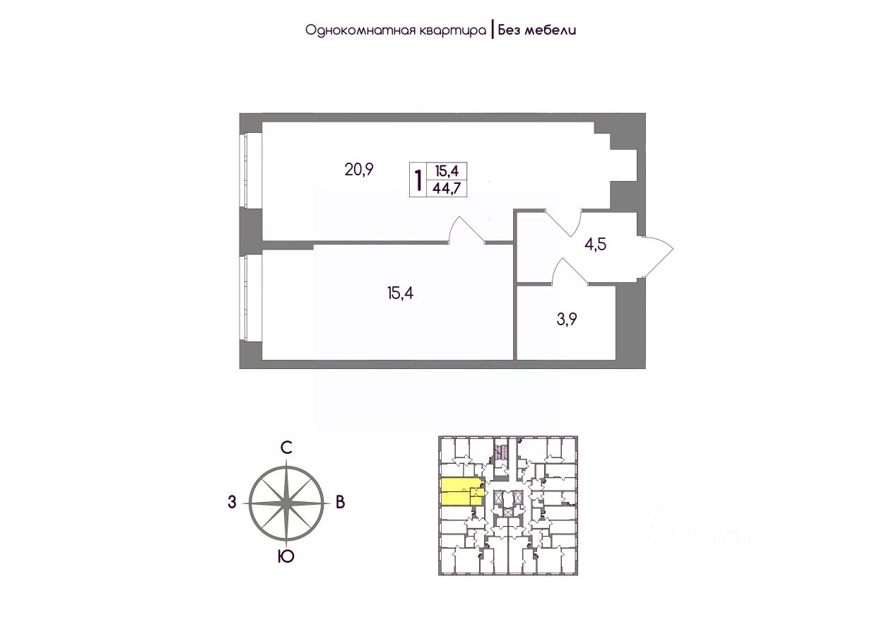 Общая площадь44,7 м²