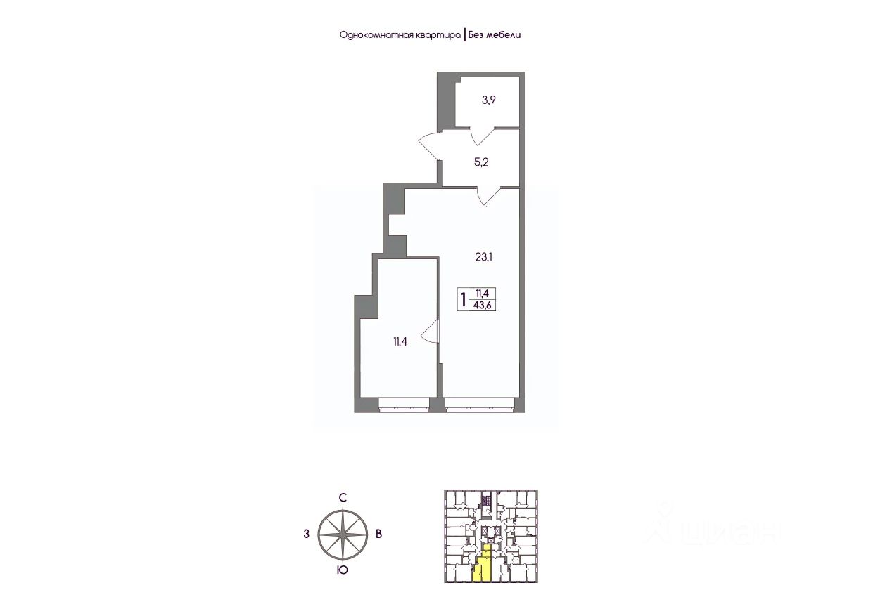 Общая площадь43,6 м²