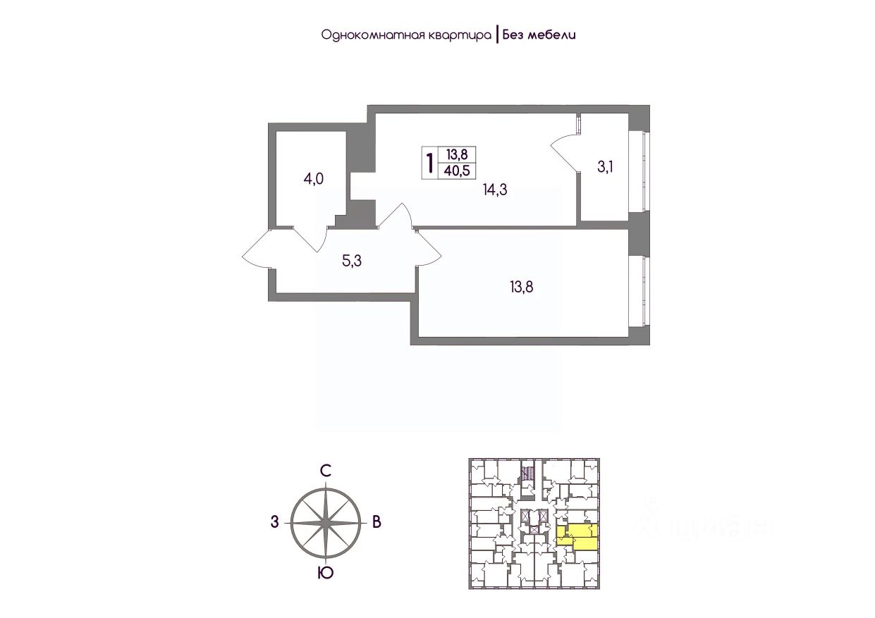Общая площадь40,5 м²