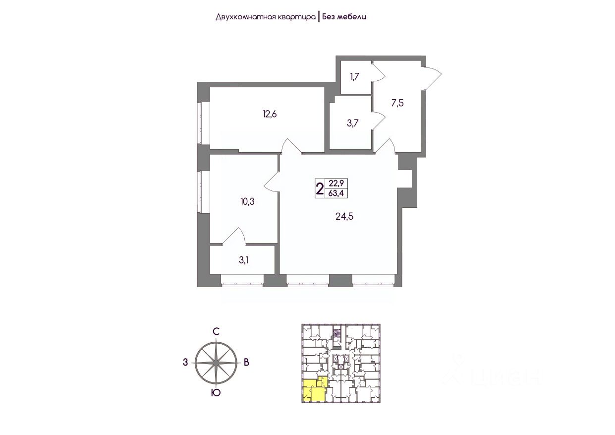 Общая площадь63,4 м²