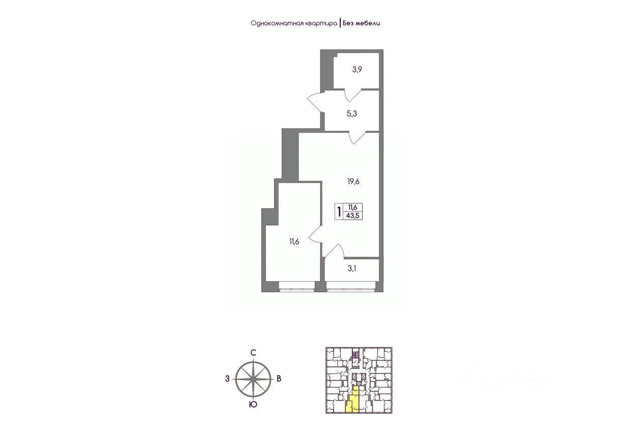 Общая площадь43,5 м²