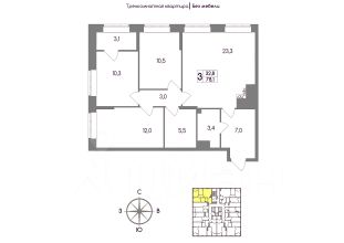 Продается 3-комн. квартира, 78,1 м²