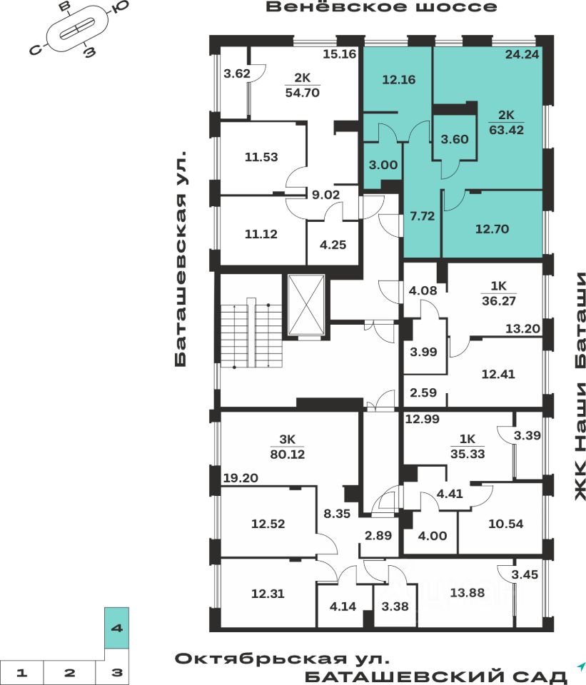 Общая площадь63,42 м²