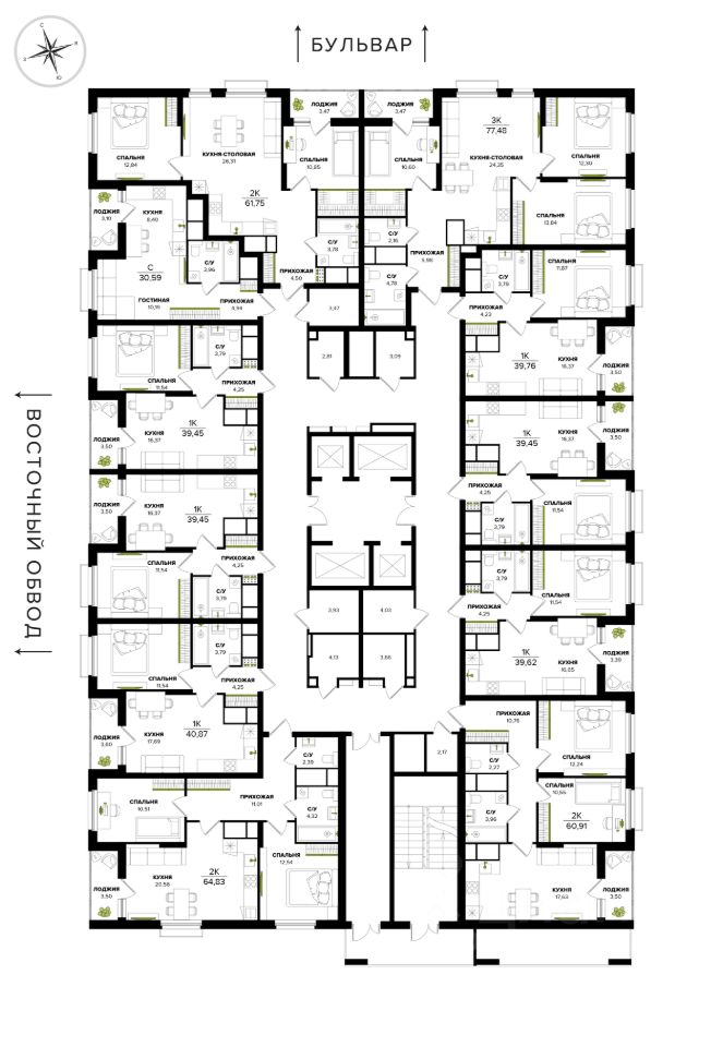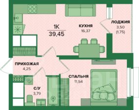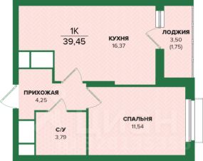 Общая площадь39,45 м²