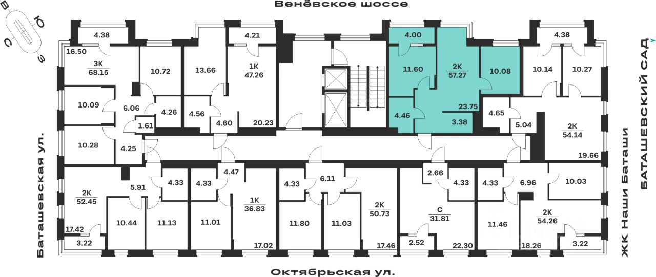 Общая площадь57,27 м²