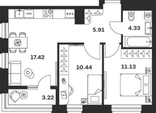 Продается 2-комн. квартира, 52,45 м²