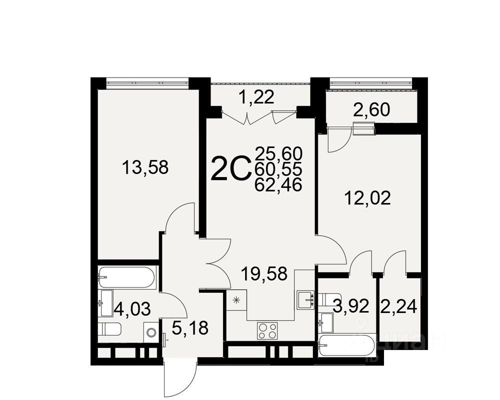 Продается 2-комн. квартира, 62,46 м²