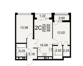 Общая площадь62,46 м²
