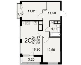Общая площадь60,83 м²