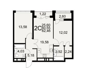 Общая площадь62,46 м²