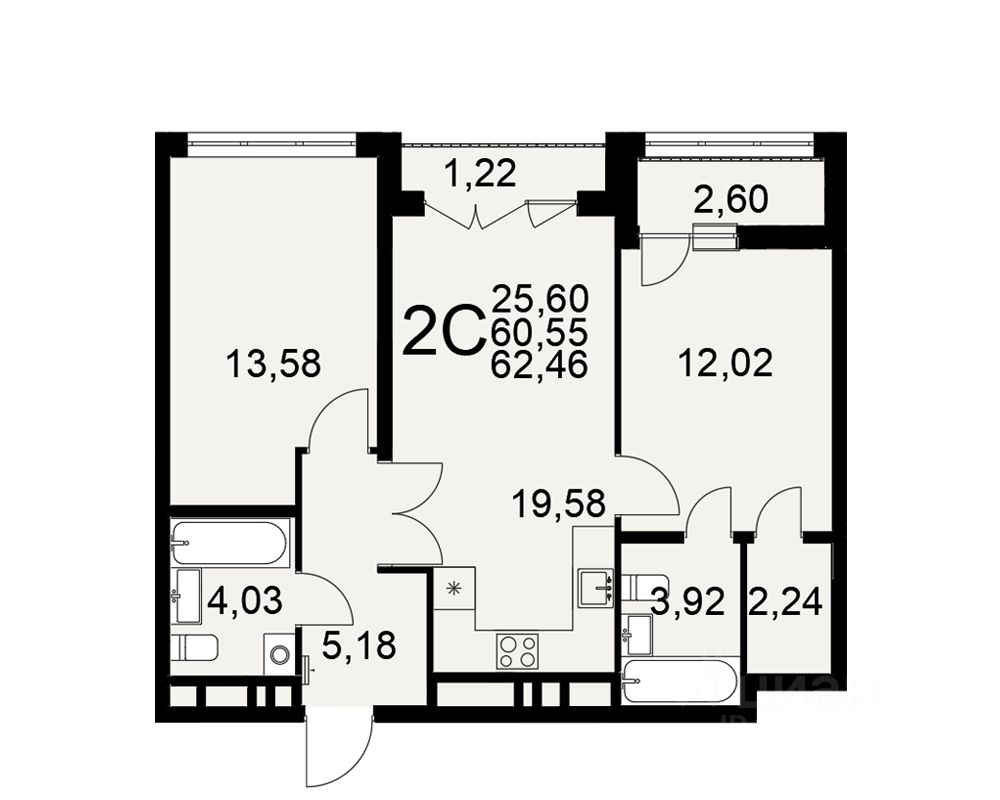 Продается 2-комн. квартира, 62,46 м²