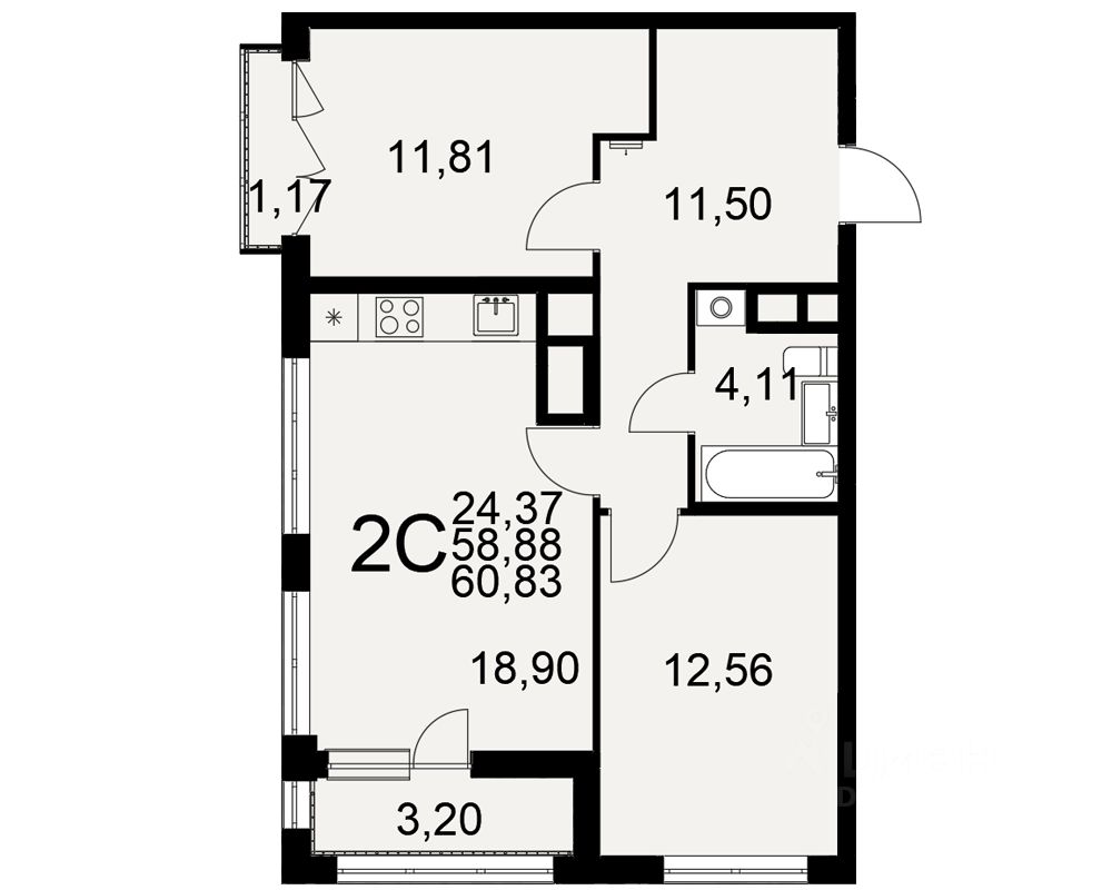 Общая площадь60,83 м²