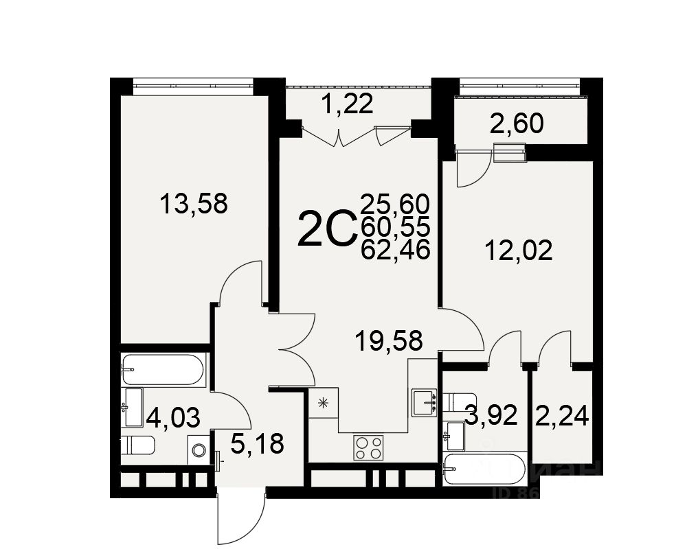 Продается 2-комн. квартира, 62,46 м²