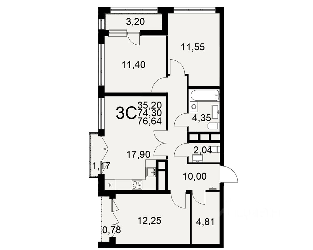 Продается 3-комн. квартира, 76,64 м²