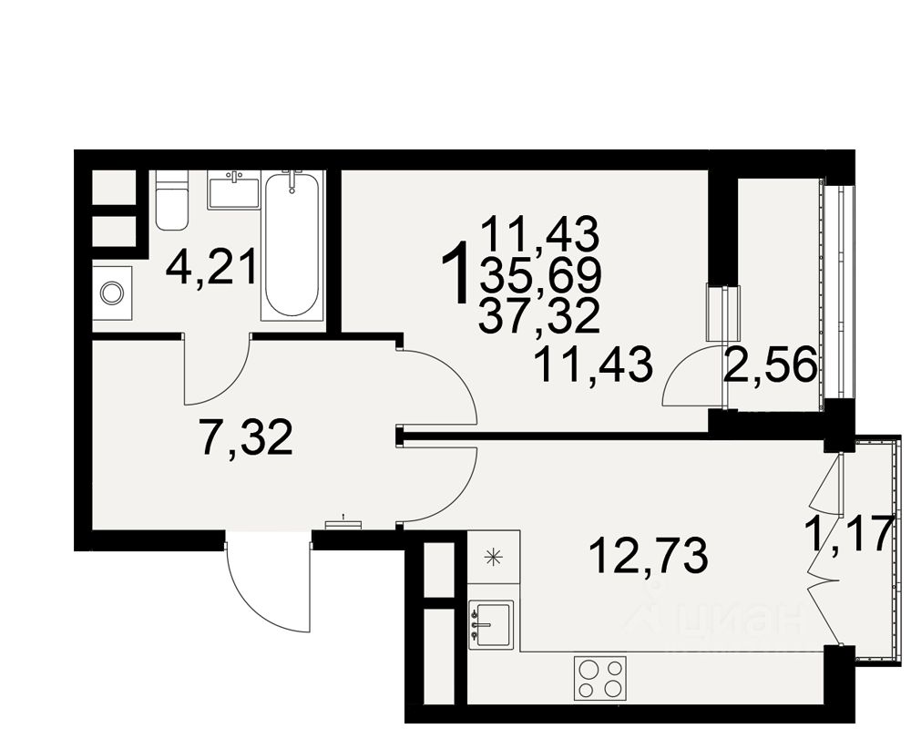 Общая площадь37,32 м²