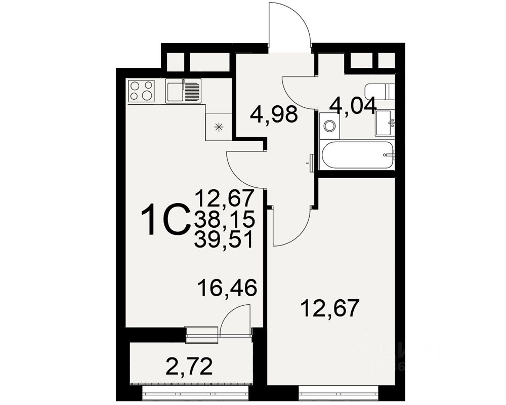 Общая площадь39,51 м²